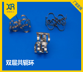 雙層共軛環(huán)填料該填料揉合了環(huán)形和鞍形填料的優(yōu)點(diǎn),采用共軛曲線肋片結(jié)構(gòu),兩端外卷邊及合適的長徑比。填料間或填料與塔壁間均為點(diǎn)接觸,不會產(chǎn)生疊套,孔隙均勻,阻力小,亂堆時(shí)取定向排列,故有規(guī)整填料的特點(diǎn),有較好的流體力學(xué)和傳質(zhì)性能。
